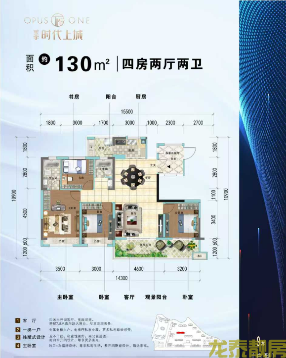奢阔尺度,四世同堂其乐融融,彰显大家风范,引领高阶人群的理想生活;前后双景观阳台,南北对流,清风入户,晾晒、观景互不妨碍;南向8.3米起全景视域阳台,拓宽景观视野,纵览园林美景;客厅+餐厅+阳台一体化,完美邂逅N重家族时光。